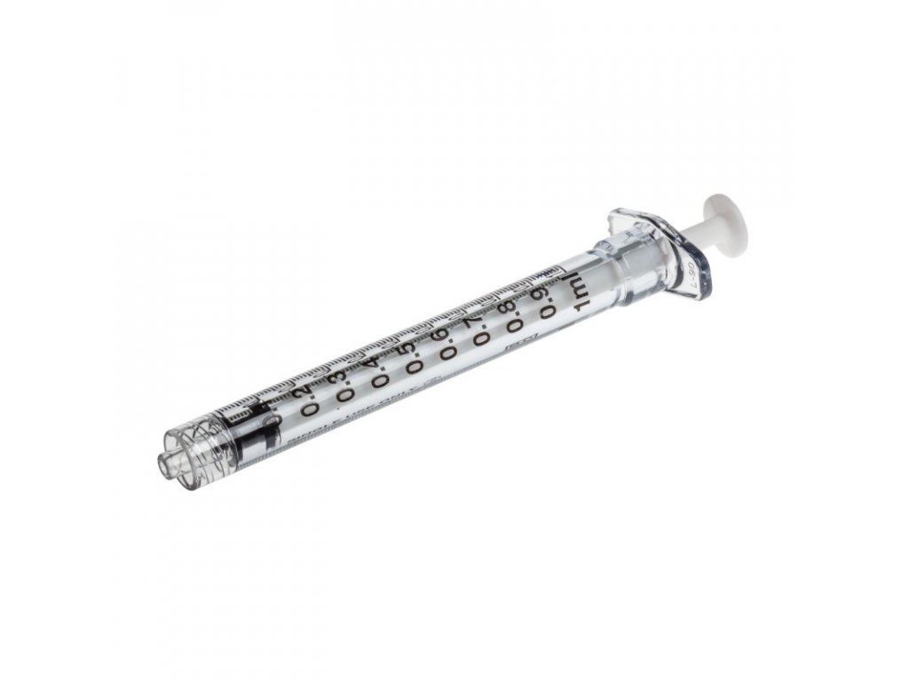 Trojdielna jednorazová injekčná striekačka so závitom Luer Lock pre pevné upevnenie injekčnej ihly.
