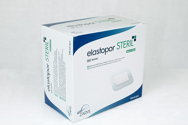 elastopor sterilná náplasť so savou vložkou vlastnosti: - samolepiaca náplasť so savou vložkou z hydrofóbnej tkaniny - pokrytá akrylovým lepidlom - mikropóry v štruktúre tkaniny zabezpečujú dostatočnú paropriepustnosť, a tým správnu výmenu plynov medzi náplasťou a pokožkou - centrálne umiestnená savá vložka absorbuje malé až stredné množstvo exsudátu a chráni pred vplyvom vonkajších faktorov - absorpčná vrstva pokrytá polyetylénovou sieťovinou, ktorá zabraňuje prilepeniu krytia k rane - elastická a pohodlná pre pacienta, prispôsobuje sa tvaru tela, čím umožňuje voľnosť pohybu - zaoblené rohy zabraňujú náhodnému odlepeniu náplasti