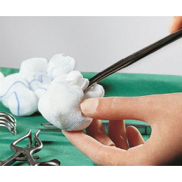 Materiál je 20-nitkový, čo značí pevnosť a dobrú štruktúru bavlnenej tkaniny – tampóny sa dobre manipulujú a nestrácajú vlákna do rany.