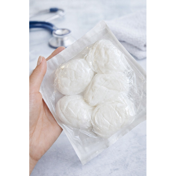 Materiál: sterilná netkaná textília – zmes viskózy a polyesteru s dobrou absorpčnou schopnosťou
