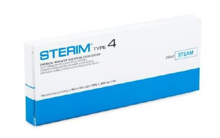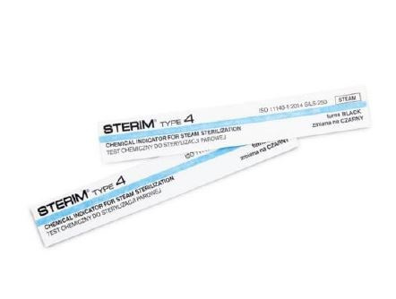 vo forme perforovaného papierového prúžku s modrou testovacou látkou. Chemický indikátor typu 4